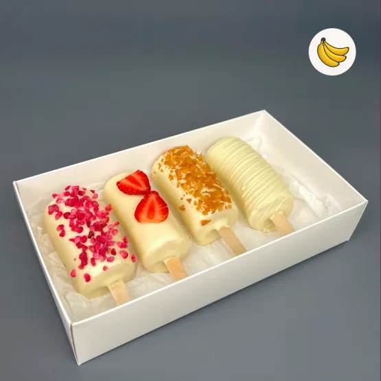 Состав: бананы в шоколаде 4 шт. Свежие бананы в бельгийском шоколаде — идеальный способ выразить чувства: ко дню рождения, годовщине, 8 Марта, 14 Февраля, Дню матери, Дню учителя, Дню бабушки и дедушки или просто в знак внимания и заботы. Фирменная открытка-инструкция по хранению — в подарок. Коробочка бананов в шоколаде — отличный подарок бабушке, маме, любимой женщине, жене, подруге, сестре, друзьям и коллеге.
