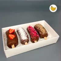 Состав: бананы в шоколаде 4 шт. Свежие бананы в бельгийском шоколаде — идеальный способ выразить чувства: ко дню рождения, годовщине, 8 Марта, 14 Февраля, Дню матери, Дню учителя, Дню бабушки и дедушки или просто в знак внимания и заботы. Фирменная открытка-инструкция по хранению — в подарок. Коробочка бананов в шоколаде — отличный подарок бабушке, маме, любимой женщине, жене, подруге, сестре, друзьям и коллеге.