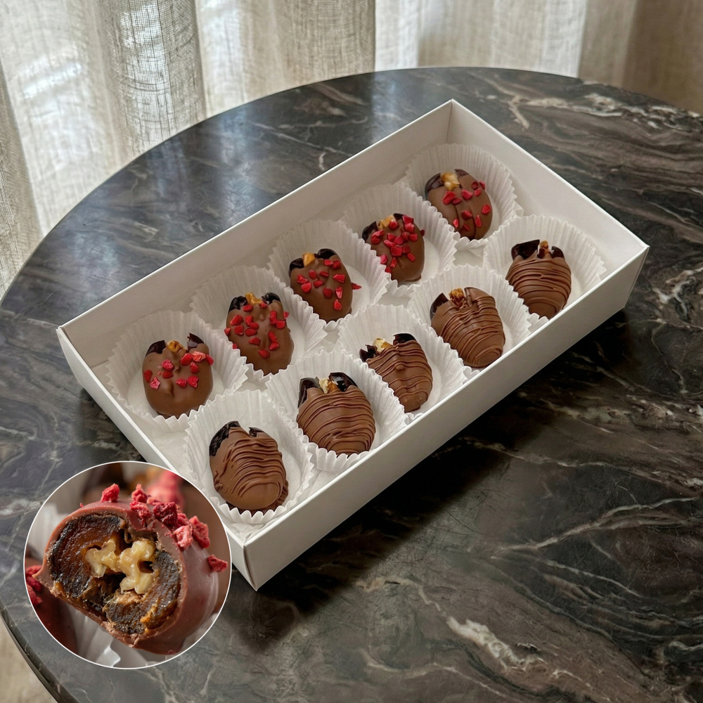 Яркий вкус фиников дополняет грецкий орех внутри, придавая особенные текстуру и вкус десерту.