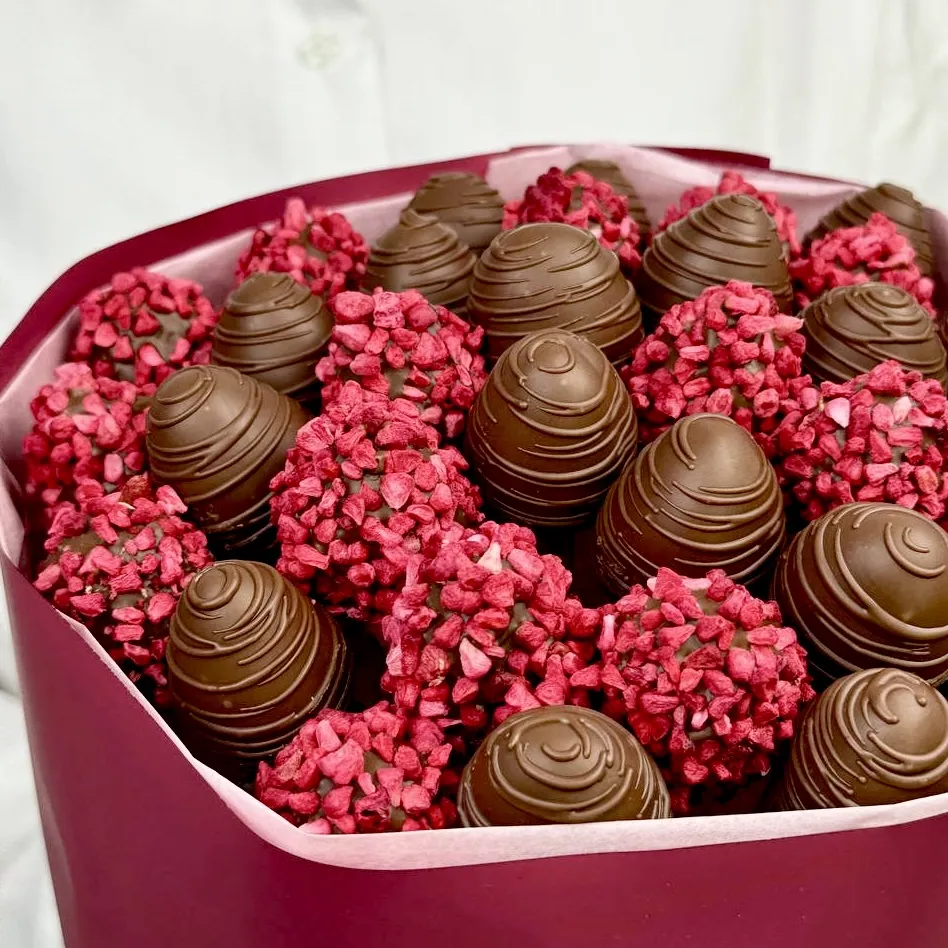 Мы собираем клубничные букеты по весу, а не по штукам. Количество, форма и размер ягод могут отличаться — ведь каждая ягода уникальна.