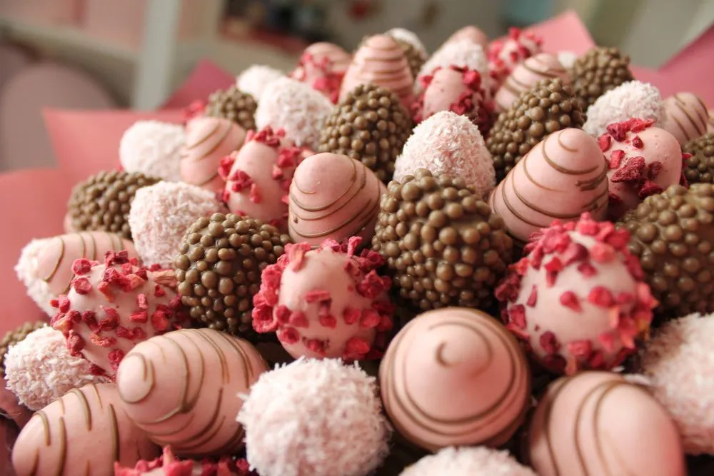 Мы собираем клубничные букеты по весу, а не по штукам. Количество, форма и размер ягод могут отличаться — ведь каждая ягода уникальна.