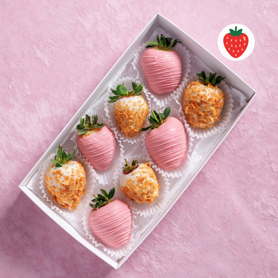 Мы собираем клубничные букеты по весу, а не по штукам. Количество, форма и размер ягод могут отличаться — ведь каждая ягода уникальна.