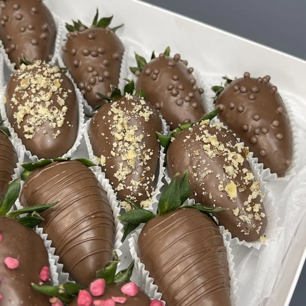 Мы собираем клубничные букеты по весу, а не по штукам. Количество, форма и размер ягод могут отличаться — ведь каждая ягода уникальна.