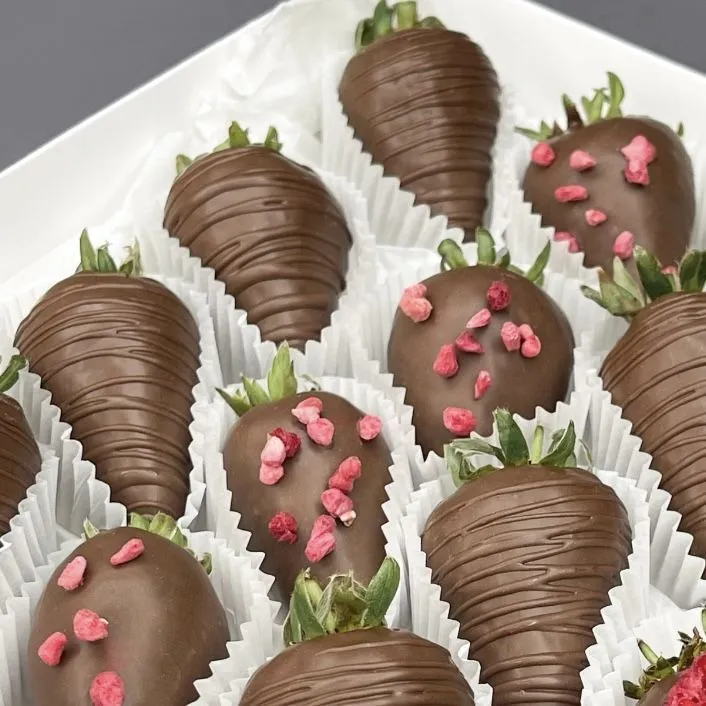Мы собираем клубничные букеты по весу, а не по штукам. Количество, форма и размер ягод могут отличаться — ведь каждая ягода уникальна.