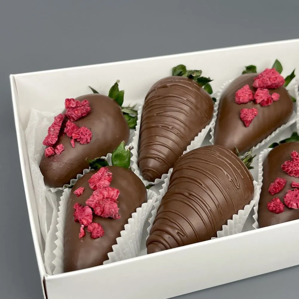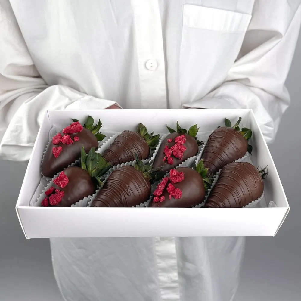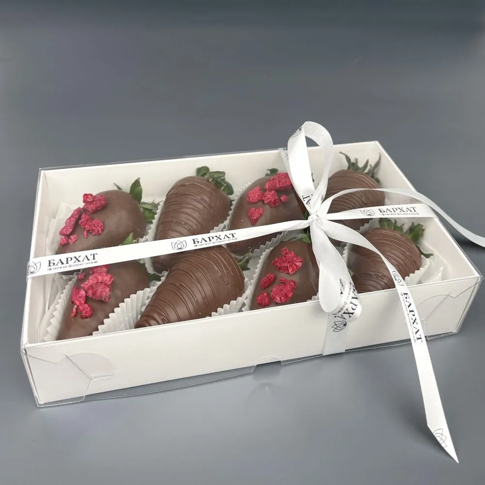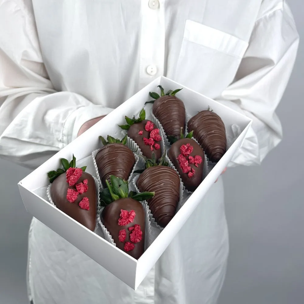 Мы собираем клубничные букеты по весу, а не по штукам. Количество, форма и размер ягод могут отличаться — ведь каждая ягода уникальна.