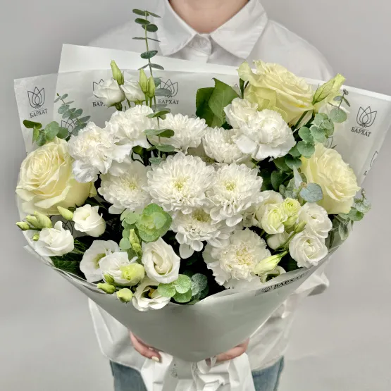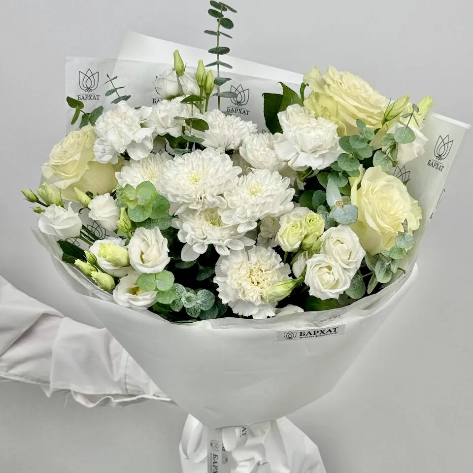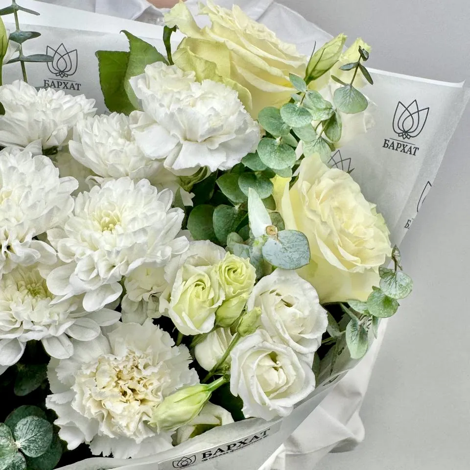 Мы стараемся собрать букет максимально похожим на фото. Возможны небольшие отличия в оттенках.