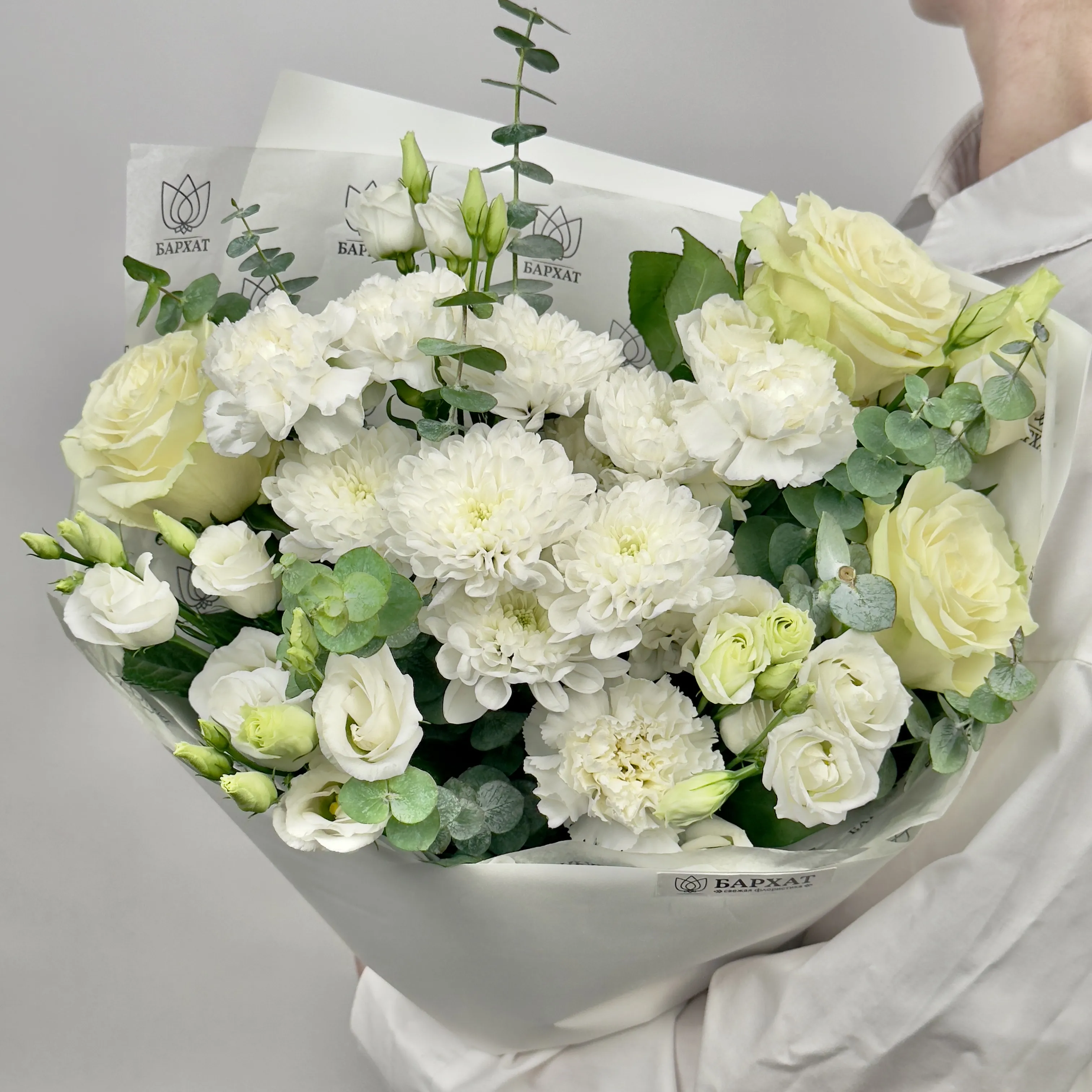 Сорт и оттенок могут незначительно отличаться — если нужных цветов не будет, флорист подберет подходящую замену.