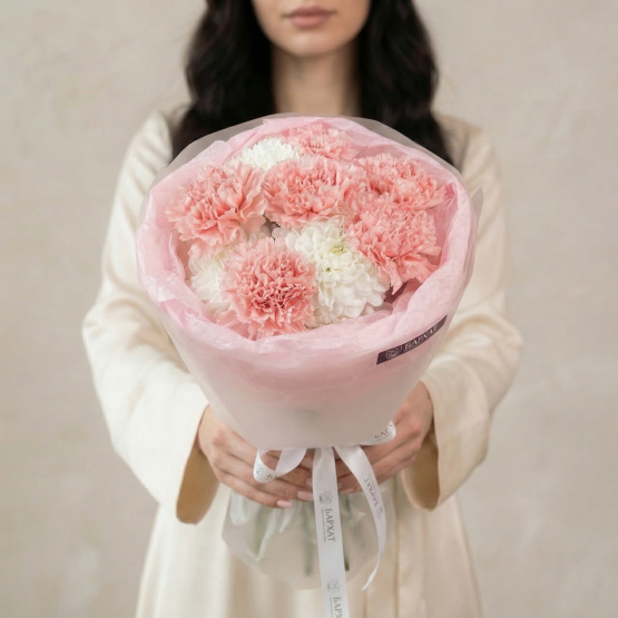 Состав: хризантема кустовая 1 шт., гвоздика 6 шт.