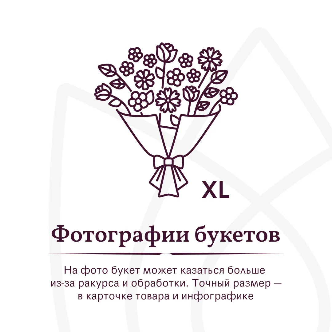 *Обратите внимание: изображение в карточке товара носит иллюстративный характер — реальный букет может незначительно отличаться от фото (например, по оттенкам цветов, форме и сборке). Точные размеры букета указаны в карточке товара.