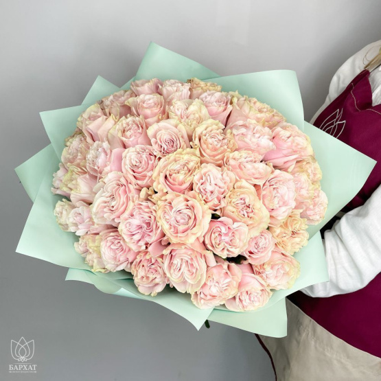 Букет из 51 розовой розы в бирюзовой упаковке
