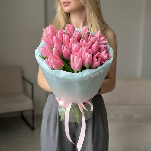 Состав: тюльпан розовый 25 шт. Свежие тюльпаны с доставкой — весеннее настроение в каждый дом🌷Хотите подарить яркие эмоции? Букет тюльпанов — это идеальный способ сказать о своих чувствах без слов. Нежные бутоны, сочные краски и тонкий аромат создают настоящее весеннее настроение и дарят радость получателю.