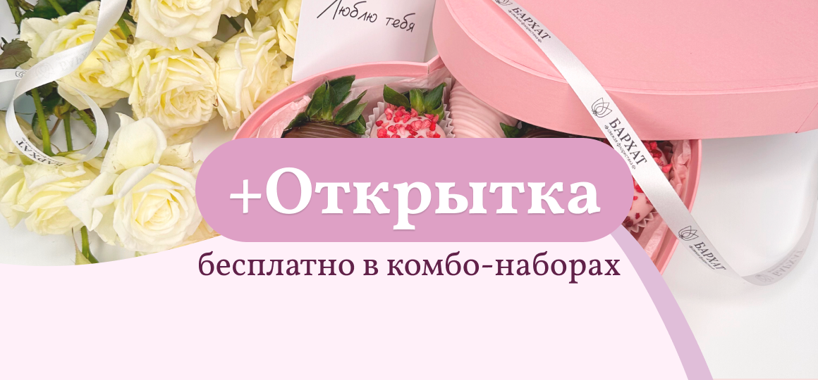 1. Выберите понравившийся комбо-набор на сайте.2. В корзине появится автоматически открытки на выбор, выберите открытку, которую хотите получить в подарок